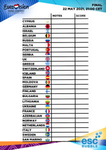 Download our Eurovision 2021 Final Scorecard